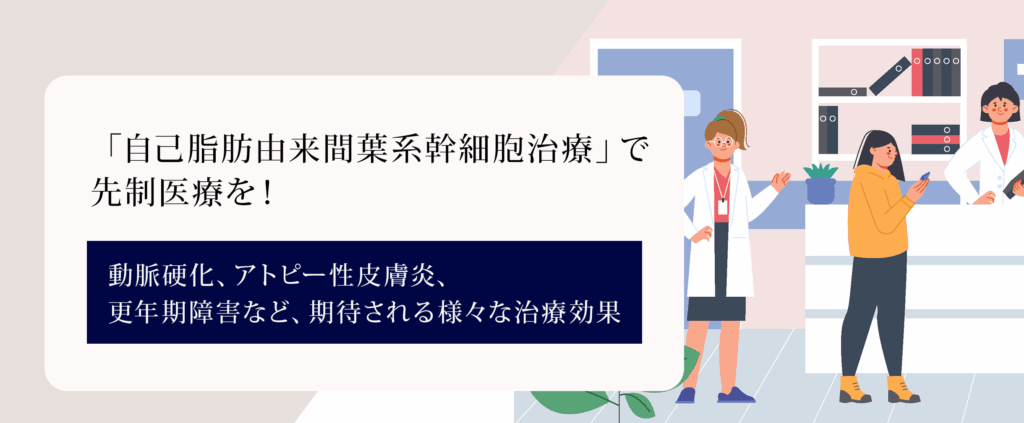 宮崎:私ども東京国際クリニックでは、2024年より自己脂肪由来の間葉系幹細胞を使用した治療を実施しています。「21世紀は再生医療の時代」と言われ、幹細胞は様々な疾患の治療に役立つ可能性を秘めています。