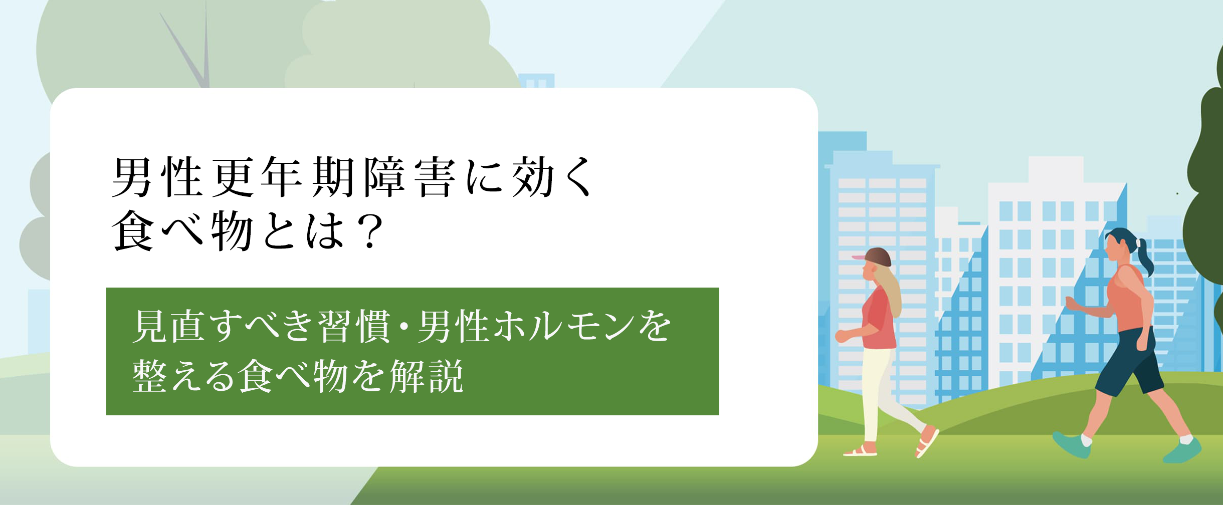 「最近なんだか疲れやすい……」「頑張らなきゃいけないのにやる気が起きない……」などと感じていませんか? それは、男性ホルモンの減少が原因で起こる「男性更年期障害」のサインかもしれません。男性更年期障害は、加齢やストレス、食生活や運動などの生活習慣が大きく関係しています。本記事では、男性更年期障害の症状のほか、男性更年期障害を招く食生活や男性ホルモンを整えるために積極的に摂りたい食べ物などについて解説いたします。