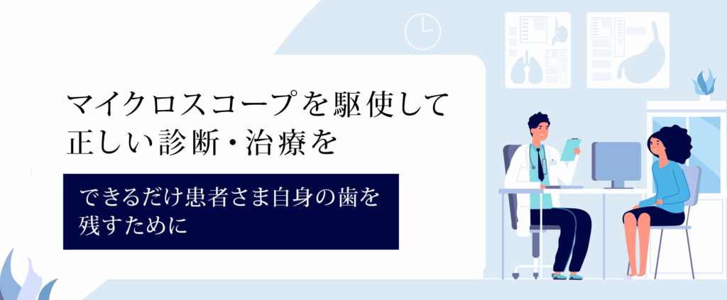 私たちの東京国際クリニック/歯科では、歯周病治療とむし歯に対する精密保存治療の2軸で毎日会員様、患者様の治療を行っています。その中で私は、神経の保存をはじめ、また、やむを得ず神経の保存が叶わなかった場合に対しても、歯科用マイクロスコープを用いて歯の根の治療(根管治療)を精密に行う保存治療を専門とする治療を行っています。当院では、「できるだけ患者さま自身の歯を残す(神経を残す)」という治療方針で歯科治療を実践しています。