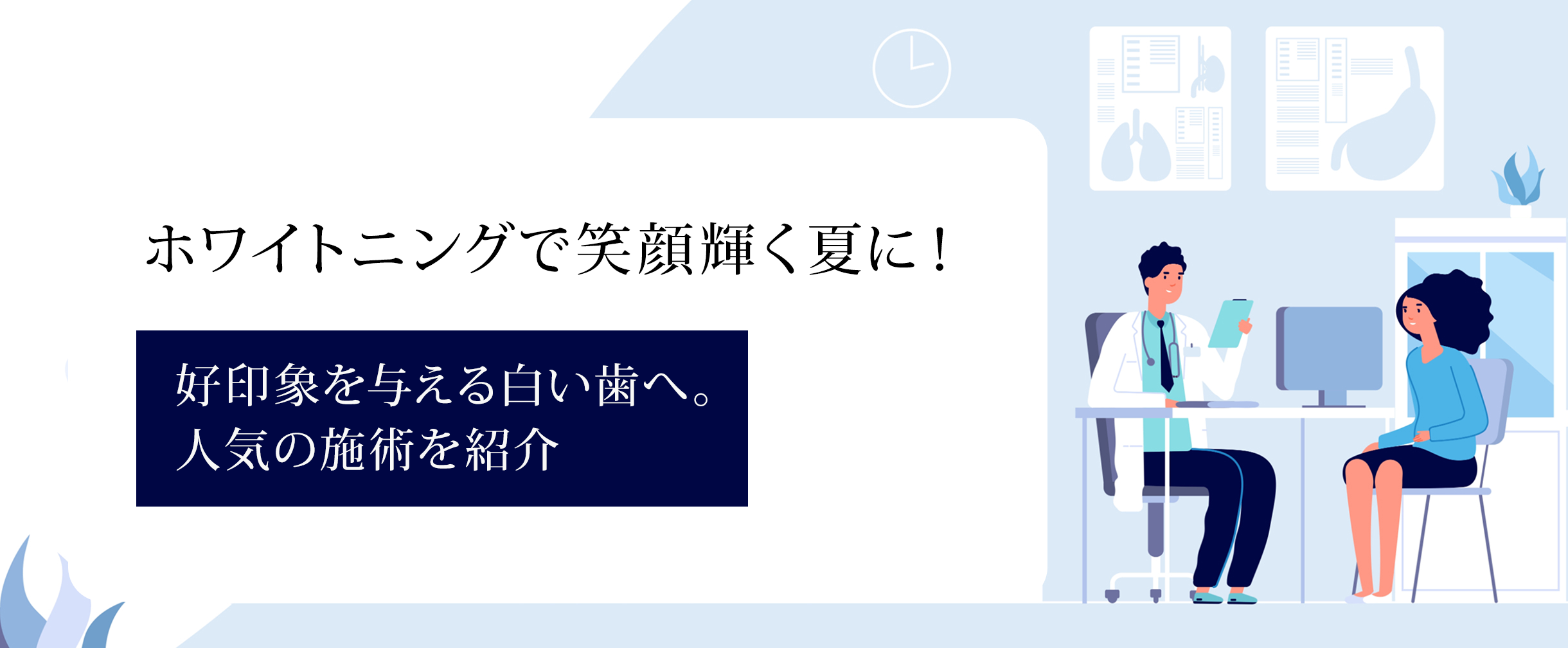笑顔が活きるアクティブな夏こそ、審美歯科治療も行える当クリニックでホワイトニングをお試しください。特に男性の方にも是非お勧めします。